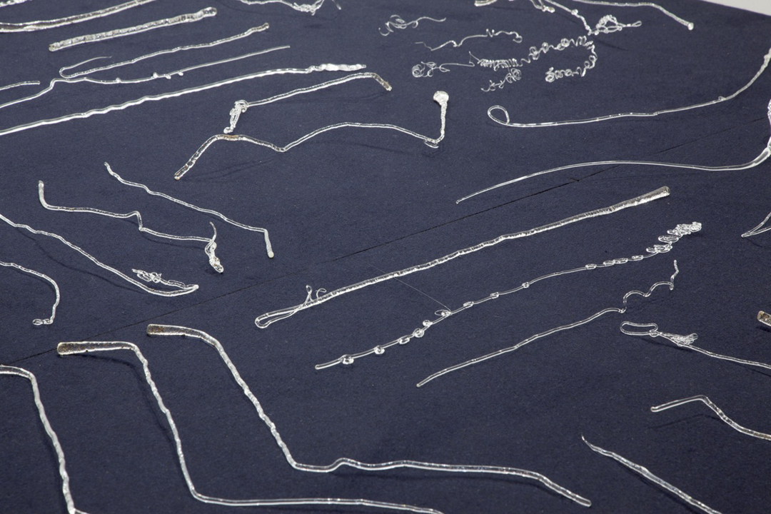 Dane Mitchell’s project for Discoveries at Art Basel Hong Kong continues his investigation of phenomena at the edges of visibility and knowledge, through the direct presentation of recreations in glass, of objects called ‘fulgurites’. From Latin fulgur, meaning thunderbolt, fulgurites are miraculously fashioned by weather. They are created instantaneously when lightning strikes sand or particular soils to form hollow glass tentacle- like objects. These unexpected forms freeze a temporal moment and give it solid form.