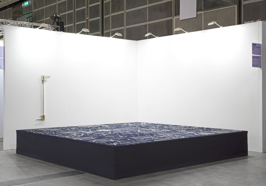Dane Mitchell remarkable display method for these delicate glass forms, makes a direct connection to an important exhibition at MoMA, New York in 1934: Machine Art, curated and designed by architect Philip Johnson, which sought to value the aesthetics of objects created without artistic intention. For Machine Art, Johnson selected items such as typewriter carriage springs, a self-aligning ball bearing, a microscope, a compass, and scientific flasks and petrie dishes. This historical attempt to aestheticize the readymade, fascinating in itself, more importantly gave occasion for Johnson to seek out very particular modes of display, and it is one of these modes of display which Mitchell recreates. A low, large platform in the booth will allow only just enough space for the viewer to walk around it. On this will sit the glass objects Mitchell will present — delicate glass fulgurites, laid out in an almost diagrammatic arrangement.