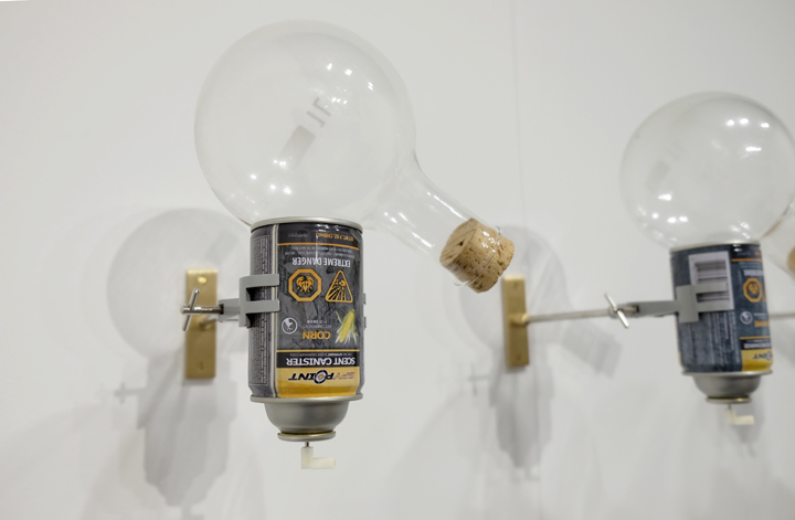 The newly produced, and never before exhibited series of objects presented at Positions, Art Basel Miami Beach represents a further development in Dane Mitchell’s practice. The series of works will each make use of a scent (and scent delivery device) used by outdoorsmen, hunters and trappers to disguise scent — to limit presence and effect in order to hunt and trap prey. These products were developed for the hunting industry with the intention of cloaking the human, masking physical presence and disavowing the body. Dane Mitchell makes use of these specific scent-products and their mechanism of delivery (automated aerosol spray at regular intervals), in a series of new sculptural works.